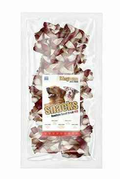 Naducaný copánek o délce 6,5 cm spletený ze všeho, co má Váš pes rád - žvýkací bůvolí kůže a lahodné, voňavé, masové jerky.