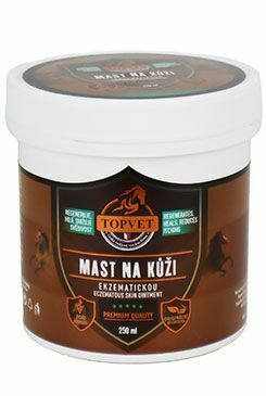 Mast na ekzematickou kůži je určena pro koně s kožními problémy. Originální receptura pokožku vyživuje, hydratuje a chrání před vnějším prostředím. Bylinná kompozice pokožku zvláčňuje, snižuje svědivost a obnovuje elasticitu. Je vhodná na rozškrábanou pokožku pro koně s letní vyrážkou. Mast vykazuje dlouhodobý účinek.