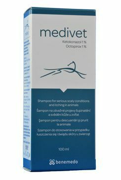 Speciální a účinný šampon Medivet k řešení závažných projevů šupinatění a svědění kůže zvířat. Přípravek obsahuje účinné látky ketokonazol a octopirox, které působí na přemnoženou kožní mikroflóru. Díky jejich kombinaci je výrobek účinný v podpůrné péči při plísňových, kvasinkových a sekundárních bakteriálních infekcí kůže s projevy šupinatění a svědění.