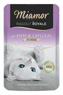 | Kompletní krmivo pro dospělé kočky. Jemné kousky v delikátní šťávě, gurmánský pokrm s kachním a drůbežím masem – zcela bez hovězího masa. Obohaceno o vitamíny. Bez barviv a konzervačních látek. Krmný návod: kočkám o hmotnosti 4 kg podávejte cca 3 kapsičky denně. Složení: maso a živočišné produkty (10 % kachní maso 20 % drůbeží maso), vedlejší produkty rostlinného původu, minerální látky. Jakostní znaky: hrubé proteiny 8 %, vlhkost 82 %, hrubé oleje a tuky 4,5 %, hrubé popeloviny 2 %, hrubá vláknina 0,4 %, vitamin D3 200 m.j./ kg, vitamin E (alfatokoferol) 100 mg/ kg, taurin 100 mg/ kg, měď (jako síran měďnatý, pentahydrát) 2 mg/ kg, mangan (jako síran manganatý, monohydrát) 1,5 mg/ kg, zinek (jako síran zinečnatý, monohydrát) 5 mg/ kg, jód (jako jodid draselný) 0,5 mg/ kg. |