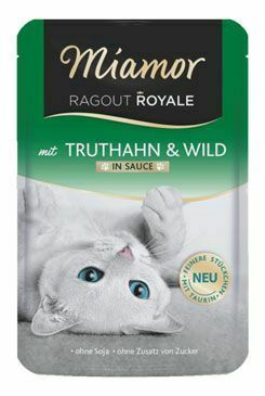 Jemné kousky v delikátní šťávě, gurmánský pokrm s krocaním masem a zvěřinou – zcela bez hovězího masa. Obohaceno o vitamíny. Bez barviv a konzervačních látek.