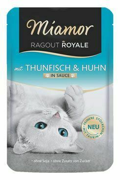 Jemné kousky v delikátní šťávě, gurmánský pokrm s tuňákem a kuřecím masem – zcela bez hovězího masa. Obohaceno o vitamíny.