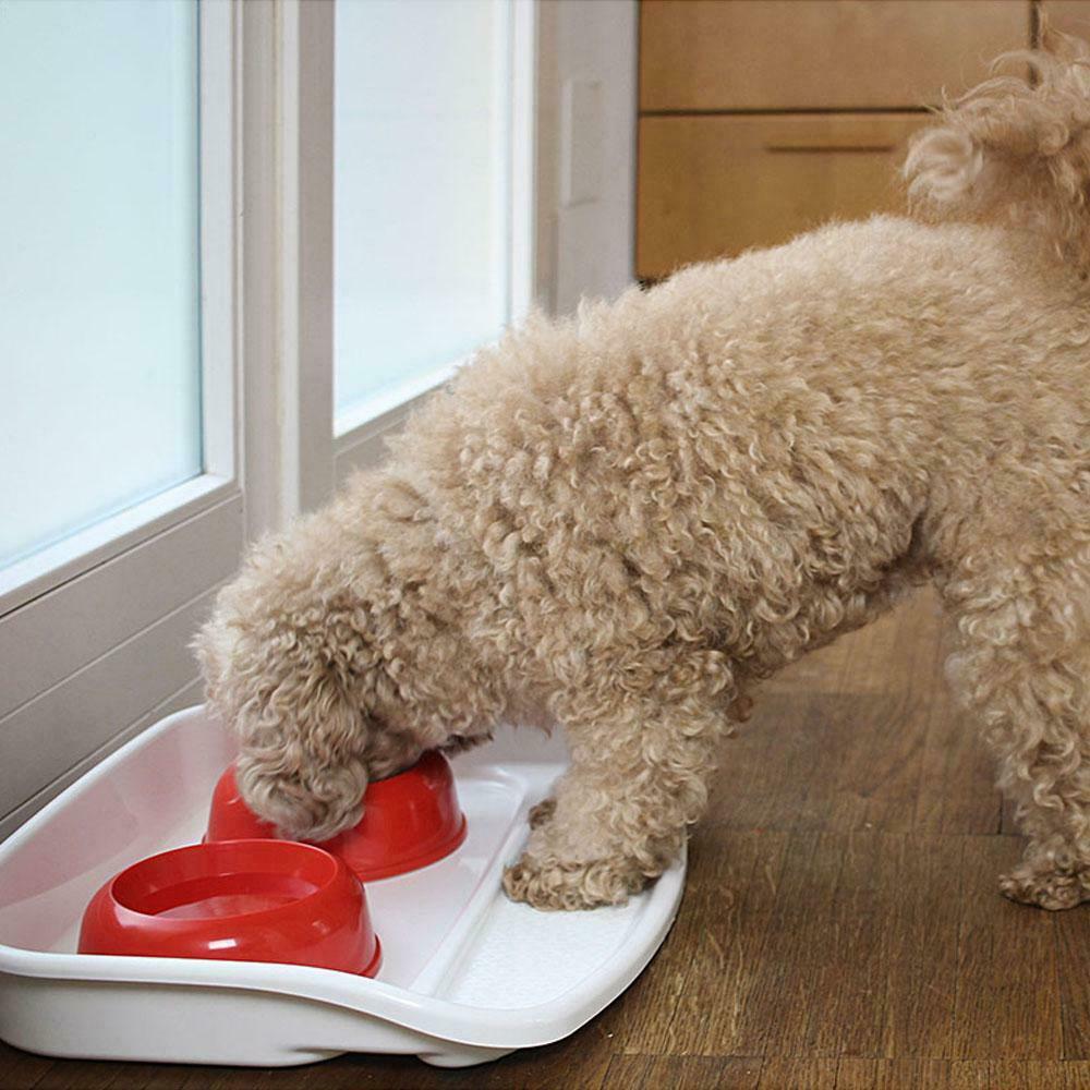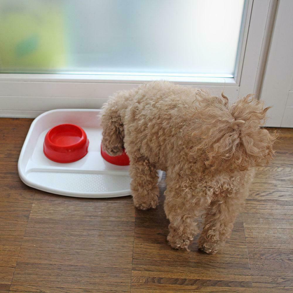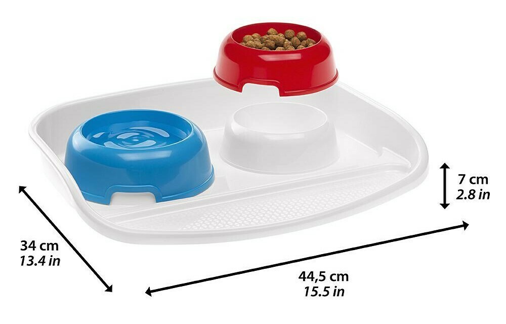 Dvě plastové misky s praktickým podnosem, objem misek 0,3 litrů. Vhodné pro kočky a malá plemena psů.