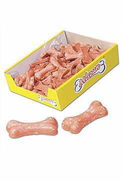 Doplňkové krmivo pro psy. Bonbony pro psy s lososovou příchutí ve tvaru kostiček.