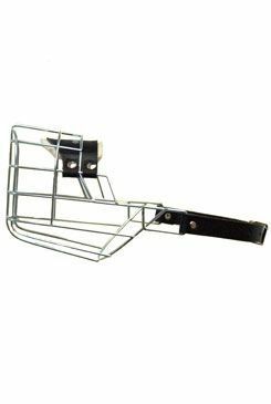 Náhubek se zinkovou povrchovou úpravou. Upínací řemínky jsou vyrobeny z kůže v černé barvě.