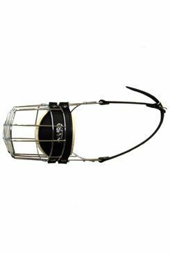 Náhubek se zinkovou povrchovou úpravou. Upínací řemínky jsou vyrobeny z kůže v černé barvě.