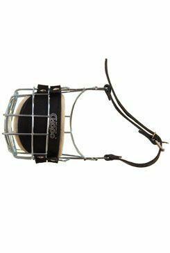 Náhubek se zinkovou povrchovou úpravou. Upínací řemínky jsou vyrobeny z kůže v černé barvě.