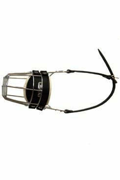 Náhubek se zinkovou povrchovou úpravou. Upínací řemínky jsou vyrobeny z kůže v černé barvě.