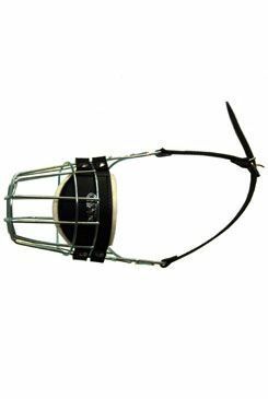 Náhubek se zinkovou povrchovou úpravou. Upínací řemínky jsou vyrobeny z kůže v černé barvě.