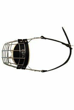 Náhubek se zinkovou povrchovou úpravou. Upínací řemínky jsou vyrobeny z kůže v černé barvě.