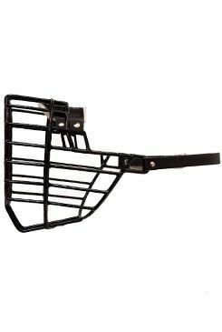 Kovový náhubek s upínacími řemínky z pravé kůže. Kvalitní černým gumoplastem potažený kov zajišťuje kvalitu a dlouhověkost výrobku. Díky potahu kovová konstrukce nemůže korodovat a náhubek v zimě nepřimrzá k psímu čenichu. Zároveň je výrobek snadno omyvatelný.