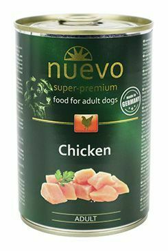 Konzerva Nuevo Kuřecí je vhodná pro dospělé psy všech plemen, s obsahem kuřecího masa. Vysoký obsah bílkovin a potřebné množství minerálů vatváří ideální nutriční základ pro Vašeho pejska. Krmivo je výborně stravitelné, tato kvalitní strava může napomoci k zlepšení stavu kožichu psa.