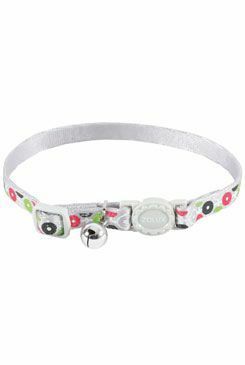Nastavitelný nylonový obojek (17-30 cm) je vybaven kovovou rolničkou a bezpečnostní pojistkou.