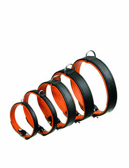 Pevný obojek pro psy s měkkou koženou podšívkou. Nýtovaný, chromované kování, stabilní, robustní a odolný.