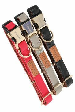 Nastavitelný obojek. Kožená nášivka s logem IMAO. Obojek opatřen pozlaceným plastovým zapínáním a pozlacenými kovovými doplňky. Na přezce je vygravírováno logo ZOLUX.