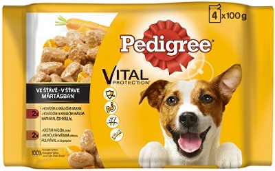 Kompletní krmivo pro dospělé psy všech plemen se šťavnatým kuřecím masem a zeleninou. Výtečně se hodí i k míchání se suchým krmivem Pedigree.
