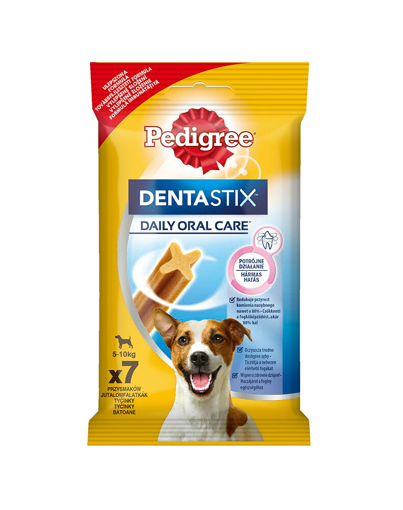 Dentální péče pro dospělé psy od 4 do 11 kg a pro štěňata starší 4 měsíců.Pedigree Denta Stix je chutná žvýkací kostička pro každodenní péči o chrup.