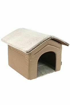 Textilní pelíšek pro psy ve tvaru boudy.
