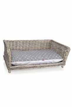 Proutěn kanape pro psy s povrchovou úpravou ve stylu Provence.