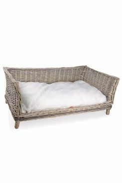 Proutěn kanape pro psy s povrchovou úpravou ve stylu Provence.