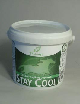 Zklidňující bylinný přípravek pro koně, působí zklidňujícím způsobem na nervovou soustavu. STAY COOL je 100% bylinný přípravek, který svým složením příznivě působí zklidňujícím a uvolňujícím způsobem na nervovou soustavu příliš temperamentních koní, kteří mají náklonnost k úprkům, nedůvěřivosti, explozivnímu a nepředvídatelnému chování. Dávkování: koně do 250 kg váhy 1 odměrka denně 250 – 500 kg 2 odměrky denně 500 kg a více 3 odměrky 1 odměrka cca = 17 g (součástí balení) Před stresujícími situacemi, jako je například transport, lze dávkování krátkodobě zvýšit. Aplikace: Prášek důkladně vmícháme do základního krmiva. Lze jej používat i jako čajovinu. Složení: kozlík, meduňka, levandule, heřmánek, mateřídouška, sporýš, maliník, ostružina, zlatobýl, tužebník, měsíček