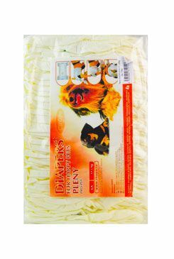 Jednorázová absorbční plena pro psy, zejména štěňata, háravé feny, nemocné psy atp. vhodná na cesty, v domácnosti či pobytu na zahradě, v noci či ve dne. Pleny jsou vyrobeny tak, aby byly pohodlné a nijak nebránili v pohybu. Jemná a měkká povrchová vrstva z netkaného textilu odvádí rychle vlhkost. Mimořádně savý materiál vstřebává rychle tekutinu a vnější folie spolehlivě chrání před prosáknutím. Plena se lehko nasazuje díky upínacím páskům, které jsou upraveny tak, aby se nezachytávaly srst mazlíčka