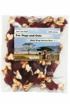 Masová pochoutka pro psy, kalciová kost s kachním masem.