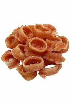 Popis: kroužky z tresky s kuřecím masem měkké pro psy a kočky. Složení: 70 % kuřecí maso, 30 % tresčí maso.