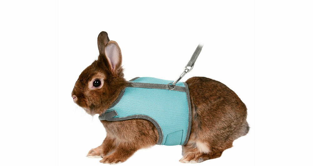 Postroj VESTA s vodítkem pro zakrslého králíčka je vyrobena z prodyšného a elastického materiálu.