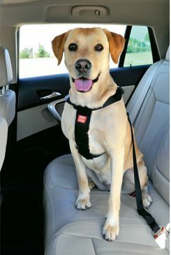 Postroj pro psa pro dvojí použití. Postroj je možné připnout v autě do pásového úchytného systému auta nebo ke standartdnímu vodítku pro každodenní procházky venku.