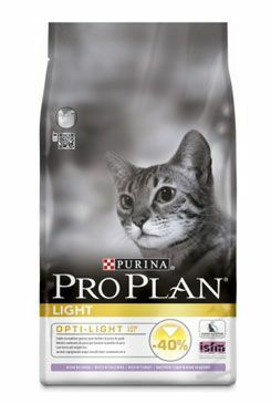 Kompletní, vyvážené krmivo ProPlan Cat Light pro obézní kočky či kočky se slony k obezitě s drůbežím masem a rýží. Jedinečná receptura se snaží o snížení a udržení stále hmotnosti u koček, proto obsahuje velice nízký podíl tuků (9 % oproti 16 % v receptuře Adult) a kalorií, vyšší obsah nerozpustné vlákniny a vyšší obsah bílkovin napomáhající udržovat svalovou hmotu i během hubnutí. Díky tvaru a struktuře granulí pomáhá předcházet tvorbě zubního plaku a kamene.