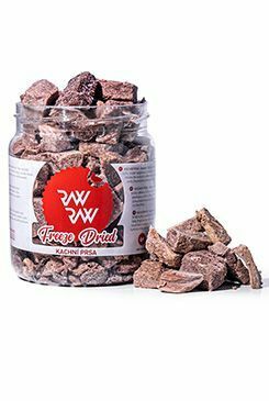 Mrazem sušené pamlsky Raw Raw jsou nejlepší, nejchutnější a nejzdravější pamlsky, které můžete svým mazlíčkům nabídnout. Masové pamlsky Raw Raw jsou vyrobeny ze syrového masa sušením mrazem (lyofilizací). Tato metoda zpracování zachovává kvalitu masa v raw stavu (odpovídající syrové stravě), vysoký obsah bílkovin, chuť i aroma a nutriční hodnoty. Pamlsky jsou zcela bez glycerinu, konzervantů, barviv, ochucovadel a jakýchkoliv plnidel či náhražek. Prostě jen čisté maso!