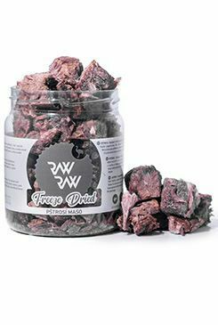Mrazem sušené pamlsky Raw Raw jsou nejlepší, nejchutnější a nejzdravější pamlsky, které můžete svým mazlíčkům nabídnout. Masové pamlsky Raw Raw jsou vyrobeny ze syrového masa sušením mrazem (lyofilizací). Tato metoda zpracování zachovává kvalitu masa v raw stavu (odpovídající syrové stravě), vysoký obsah bílkovin, chuť i aroma a nutriční hodnoty. Pamlsky jsou zcela bez glycerinu, konzervantů, barviv, ochucovadel a jakýchkoliv plnidel či náhražek. Prostě jen čisté maso!
