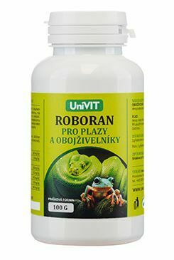 ROBORAN pro obojživelníky je speciální přípravek s obsahem vitamínů i mikro a makroprvků. Pozitivně ovlivňuje metabolismus, má vliv na zdravý stav a rozmnožovací schopnosti. Biotin, který je v přípravku obsažen, příznivě zasahuje do metabolismu kůže.