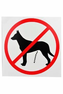 Samolepka upozorňující zákazníky/klienty, aby nedovolili močit pejskům ve vašich prostorách.