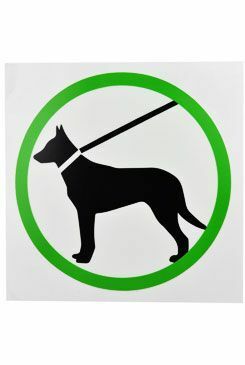 Samolepka upozorňující zákazníky/klienty na vstup do prostoru možný se psem pouze na vodítku