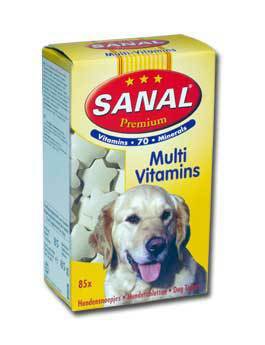SANAL PREMIUM Multivitaminy představují skvělou péči pro Vašeho psa. Přidáním pšeničných klíčků do originálního složení obsahuje každá tableta Sanalu již přes 70 vitamínů a minerálů. To u psů zajišťuje dobrou celkovou kondici, lesklou srst a vysokou vitalitu