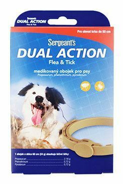 Antiparazitní obojek pro psy. Hubí ektoparazity, především blechy a klíšťata po dobu 180ti dní po aplikaci. Obojek je jedinečný dvojí ochranou - spodní strana účinkuje jak pudr, vrchní strana obojku účinkuje jako sprej. rychlý účinekdlouhodobá ochrana (až 6 měsíců)aromatizovanéúčinné látky se vstřebávají do vrchních vrstev kůže a do srsti, kde účinkujípůsobí proti blechám, klíšťatům a všem jejich vývojovým stádiímje bezpečný, mohou je používat koťata od 3 měsíců je voděodolný a jeho účinek se nesnižuje koupáním ani deštěmje určený k trvalému nošenípokud se obojek zamastí, stačí ho omýt mýdlovou vodou