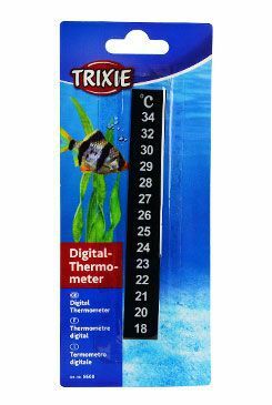 Digitální teploměr 13cm TRIXIE. Akvarijní teploměr se samolepkou zobrazuje teplotu od 18 do 34°C.