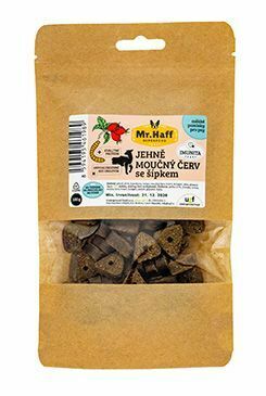 Poloměkké pamlsky s hmyzím proteinem, které jsou vyrobeny s ohledem na výživu psů. Neobsahují obiloviny ani drůbeží protein, a proto jsou skvělou volbou pro psy trpící potravinovými alergiemi. Obsažený šípek díky vysokému obsahu vitamínu C posiluje imunitu a je vhodným doplňkem pro podporu pohybového aparátu. Bez barviv a dochucovadel.