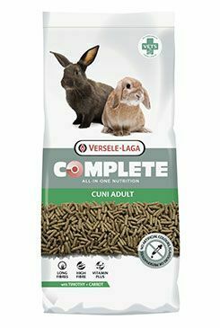 Versele Laga Cuni Adult Complete je 100% extrudované krmivo pro dospělé králíky a zakrslé králíky. Je bohaté na vlákninu rostlinného původu z celých neporušených kousků různých druhů sena a neobsahuje obiloviny - vhodné na přirozenou zubní péči a pro vyváženou střevní mikroflóru. Krmivo obsahuje bylinky, mrkev, seno z bojínku lučního a velké množství nejrůznějších dlouhostéblých trav. Pomáhá tak redukovat nepříjemný zápach.
