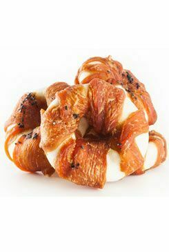 Složení: Hovězí kůže 82 %, Kuřecí maso 7 %, kachní maso 7 %, Sezam 2 %, přírodní glycerin 1 %, přírodní sladidlo 1 %.