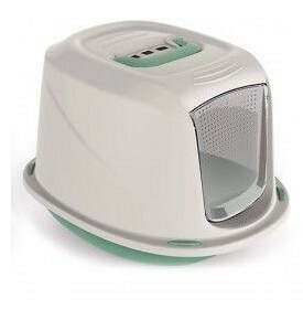 Krytá toaleta pro kočky s filtrem a madlem pro přenos.