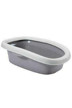 Prostorná otevřená toaleta pro kočky se zesíleným okrajem, který zabraňuje vysypávání podestýlky.