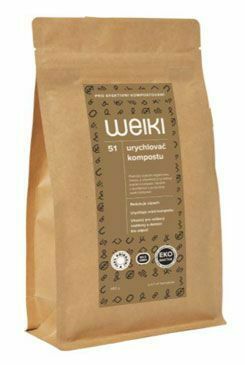 Ekologický urychlovač kompostu weiki je speciálně upravený bramborový škrob, který nakrmí užitečné mikroorganismy. Urychluje kompostování a likviduje zápach. Pomáhá fixovat živiny v kompostu a zlepší jejich využitelnost rostlinami. Získáte tak úplně jednoduše prvotřídní přírodní hnojivo. Celou akci ještě vylepšíte a urychlíte, když urychlovač použijete v kombinaci s probiotiky pro kompost weiki.