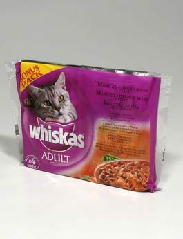 - kapsička s krůtím masem: maso a výrobky produkty živočišného původu 37 % ( 4 % krůtího masa), obiloviny, bílkovinné extrakty rostlin.původu, minerální látky