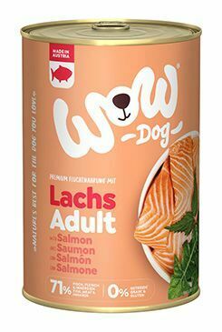 WOW Losos s rajčaty je kompletní mokré krmivo pro dospělé psy všech plemen se 71 % obsahem masa a vnitřností od předního rakouského výrobce. Maso je doplněno zeleninou, bylinkami z Alp a vysoce kvalitním lněným olejem. Konzervy jsou ručně plněné v rodinné rakouské firmě z místních, většinou alpských, surovin ze zdravé přírody.