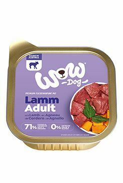 WOW Jehněčí s dýní je kompletní mokré krmivo pro dospělé psy všech plemen se 71 % obsahem masa a vnitřností od předního rakouského výrobce.