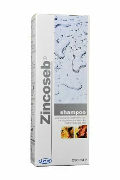 Při výrazném svědění pokožky psa či kočky je vhodné šampon doplnit i zklidňujícím roztokem Zincoseb Spray.